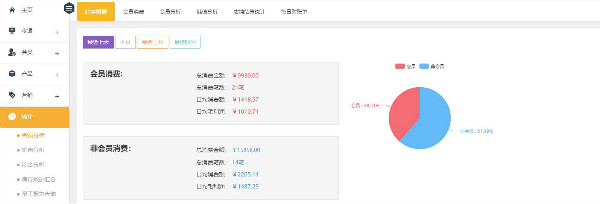 会员消费明细表、会员充值明细表、会员储值卡使用表、服务员提成等经营报表齐全。