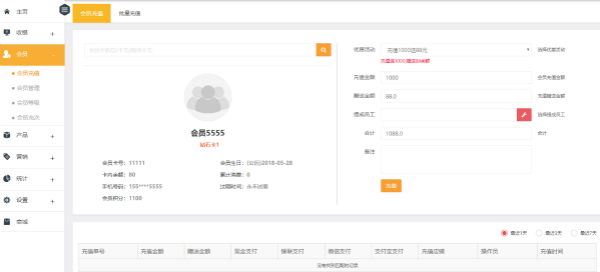 会员管理:可以根据客户的需求进行划分会员级别,并进行管理;