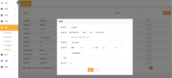 5、强大的折扣优惠活动设置,消费满就送、充值送金额等活动,激起会员消费欲望、唤醒不活跃会员充值。