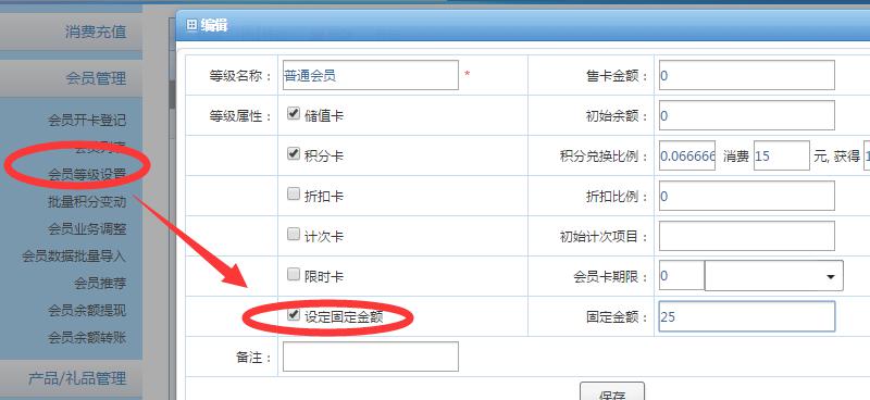 在纳客会员管理软件会员等里面有一个固定金额设置,每个会员等都可以设置不同的固定金额。比如,普通等洗车一次25元,高等会员洗车一次20元。