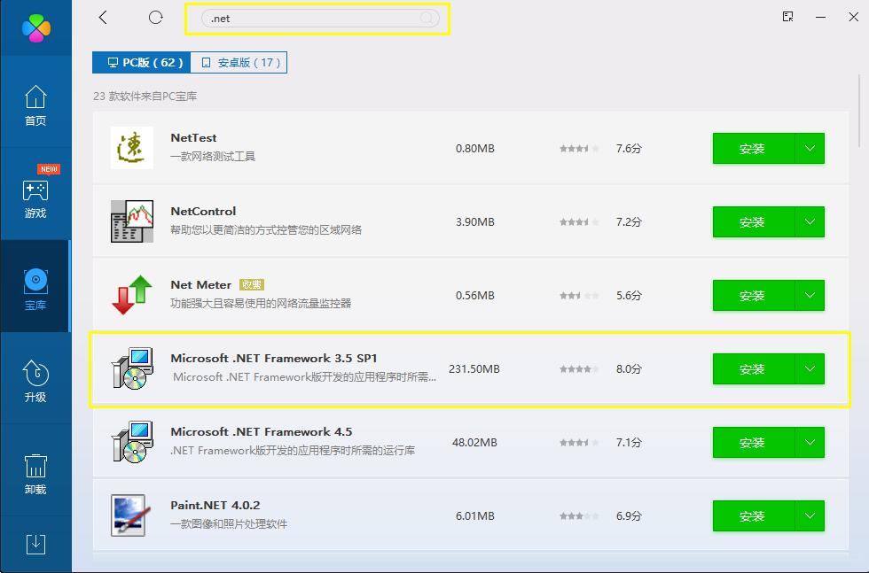 然后搜索“.NET”,然后由于伟德app苹果版二维码下载单机版本需要的是.NET 3.5的支持,所以选择Microsoft .NET Framework 3.5安装即可。