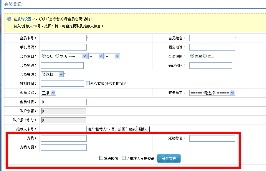 存钱在卡里或者购买等值的会员卡成一宠物店的会员,后续消费可以直接刷卡。刷卡消费的时候也可以设置输入密码,储值和积分有变动的话,都可以自动发送短信,保证了客户消费的安全性和透明度。