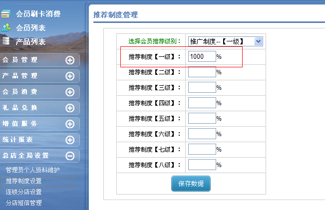 按照这个推荐比例去设置之后,推荐会员消费,被推荐人就可以按这个比例去提成。