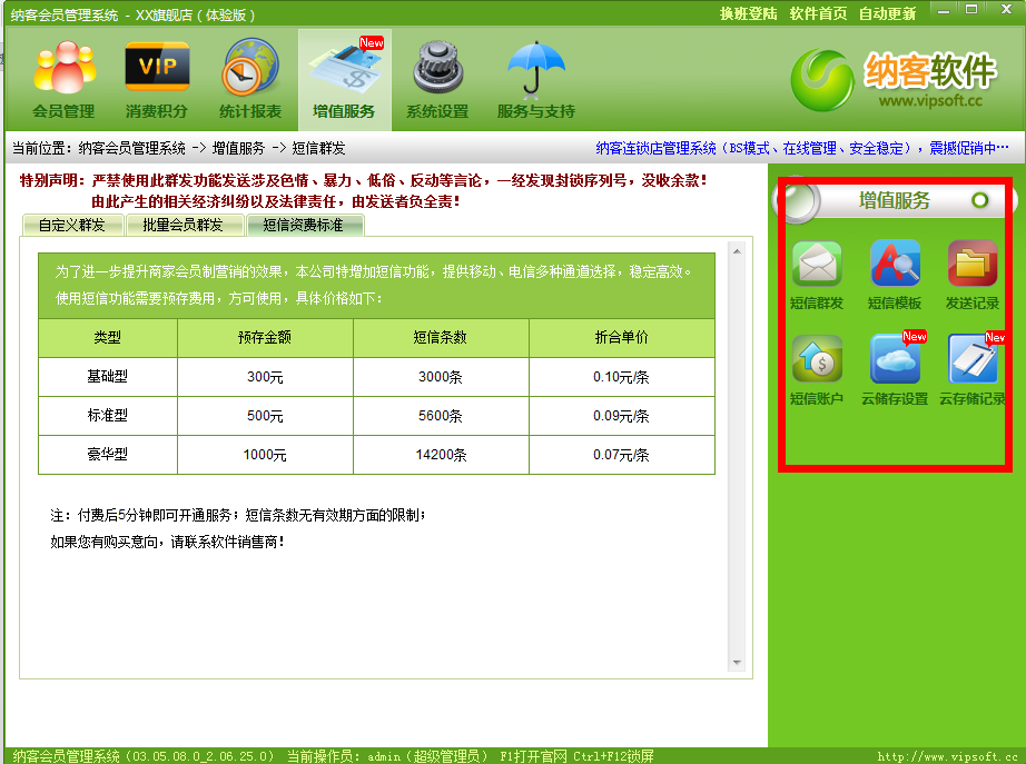 5.增值业务:短信增值业务,在节假等特殊假日,商可以给予消费者节日问候、店内促销活动等信息、增加彼此感情、促进店内消费。