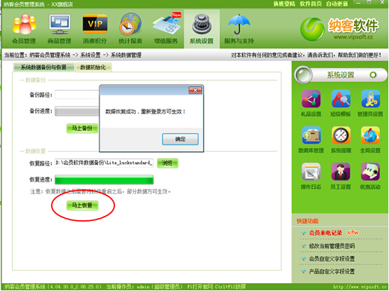 大在使用会员管理软件的时候一担心的就是数据的安全性,如果数据丢失了后果就很严重的 。导致您的系统就无法正常使用了,所以会员数据是所有商一担心的一个核心问题。接下来给大演示如何恢复数据的方法如图: