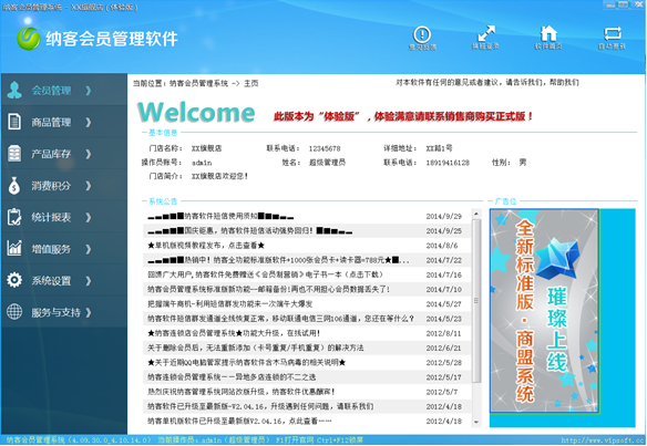 好消息,好消息。纳客的单机版会员管理软件经过不断的研究开发后推出了一新的带有进销存功能的单机版软件!