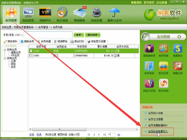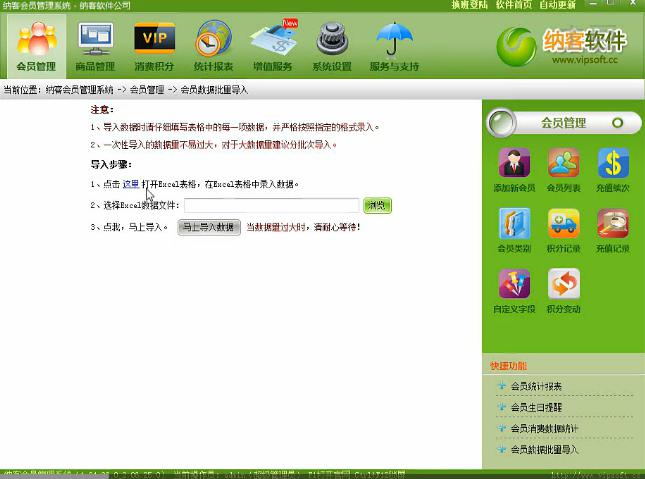 进入纳客商场伟德BV客户端软件(注:会员数量批量导入功能只有标准版才有,普及版无法批量到处),