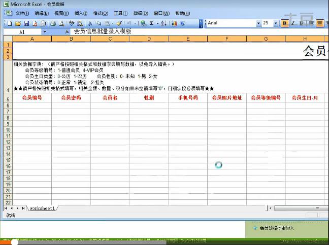 必填项一会员编号、会员名、性别、手机号、会员等、会员生日等详细请观看下面的视频教程。不是必填项请留空。