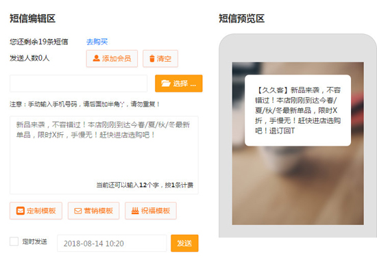 短信的发布时间十分灵活,既可以即时发送,也可以定时发送,具有很强的散播性。针对特定人群的营销,则可以通过会员等、积分数量、消费金额或者标签等条件进行查询。