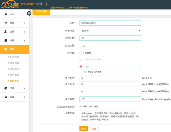 比如及时以短信的方式发送会员消费明细、会员生日发送祝福短信、节假日发送商家福利、积分兑换礼品等。商家可以借助伟德BV客户端的统计报表功能,来统计分析消费倾向、消费频率,从而更加有针对性的来进行营销管理。