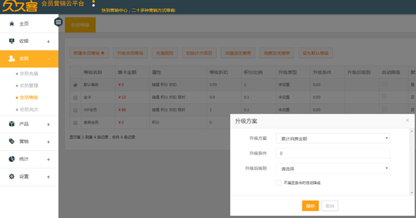 商家对会员进行分级制度管理,设置不同的会员等级,每个等级享受的会员折扣和消费获得的积分比例都不一样。且建立会员等级的升级制度,会员消费金额达到一定金额可以升级为高级会员,这样能更好地为高端客户服务,留住客源,稳定营业额。