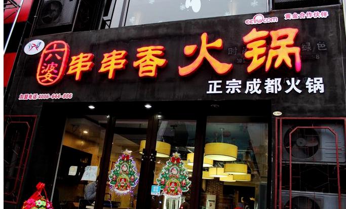 六婆串串香,四川省著名商标。串串香四大天王之一,全加盟店2014年突破600,同行业之,全使用一次性底料,使用称签方式记账,六婆原是有名的乐山小吃,经过后人的发展在变成了今天成都有名小吃的六婆串串香。现在的六婆已经大有改变了,添加了许多的中药材改善了口感,让六婆更加健康。