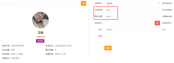 2、 该软件可以按照不同的会员级别,设置不同的充值赠送金额,比如普通会员充值1000元赠送200元,钻石会员充值1000元可赠送500元等;会员消费后可获得一定比例的积分,积分可以累积来兑换礼品或是折换现金。