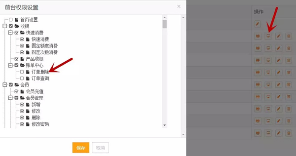 在【系统】→【系统设置】→【角色权限】→【前台权限设置】中,新增订单删除功能,对于操作出错的订单,有了补救的机会。