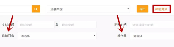 在【收银】→【账单中心】→【筛选更多】界面中,新增了根据连锁门店和操作员筛选,商查找信息更加便捷。