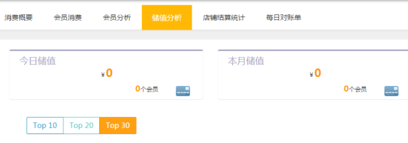 在标准版软件中的【统计】→【会员分析】界面中,新增储值分析报表。商家可查看当日储值、当日储值、累计储值、未消费余额。