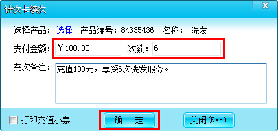 提示:充值100元,次数一6表示此次充值可以享受6次洗发服务;