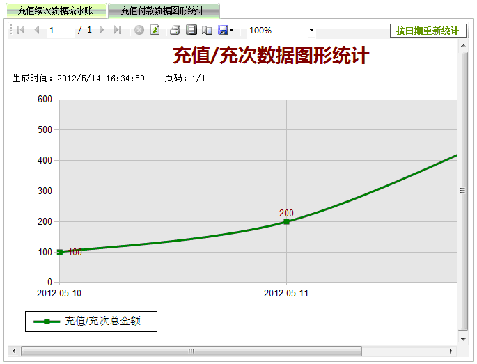 此统计方式,能够方便的看出每天的充值缴费合计金额。