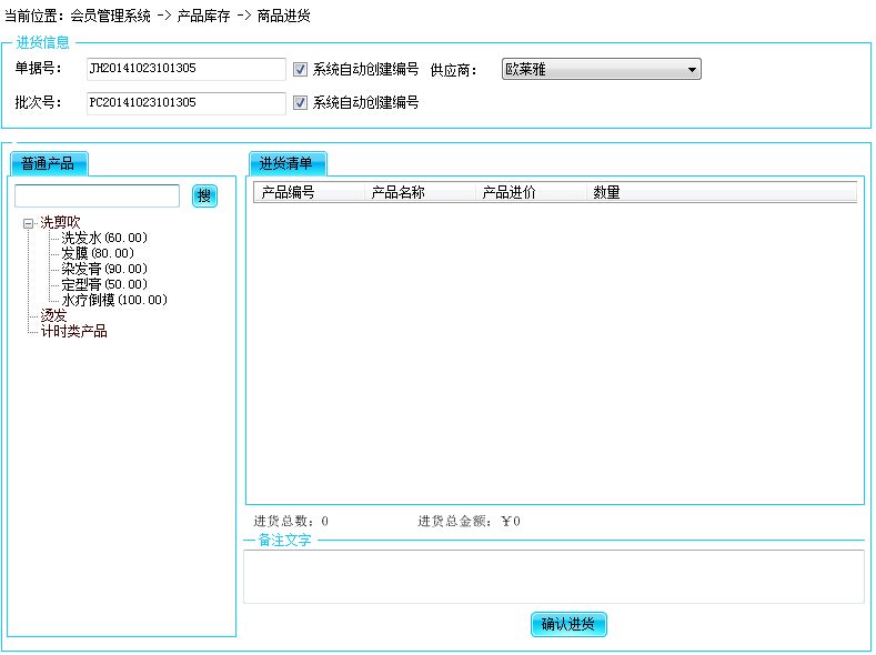 3.选择完成进货产品以后,点击【确认进货】按钮。