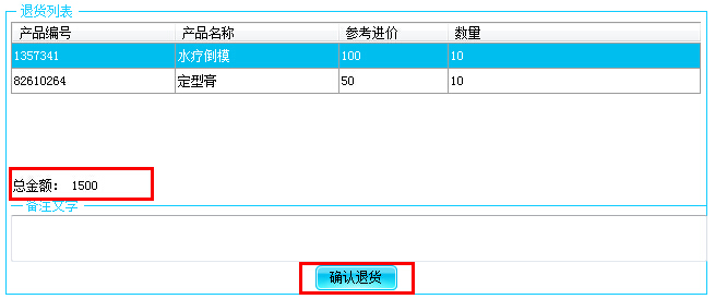 双击列表中要退货的订单信息,页面跳转到退货窗口,如图:
