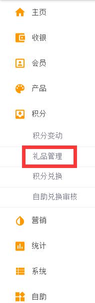(1)打开主菜单【积分】----- 点击【礼品管理】,如图: