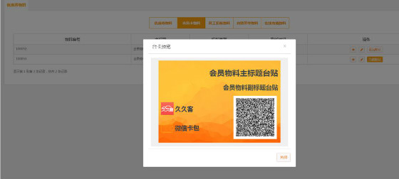 步骤二:预览会员卡物料样式(营销=》物料管理=》会员卡物料=》预览)