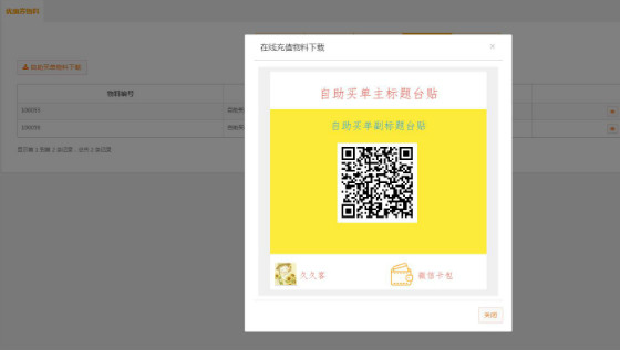 步骤二:预览自助买单物料样式(营销=》物料管理=》自助买单物料=》预览)